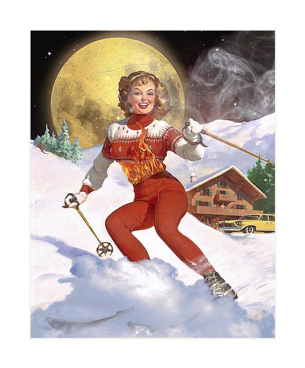 This classic Pin-Up Skier Girl has a fire in her belly and a twinkle in her eye! 🔥✨🎿