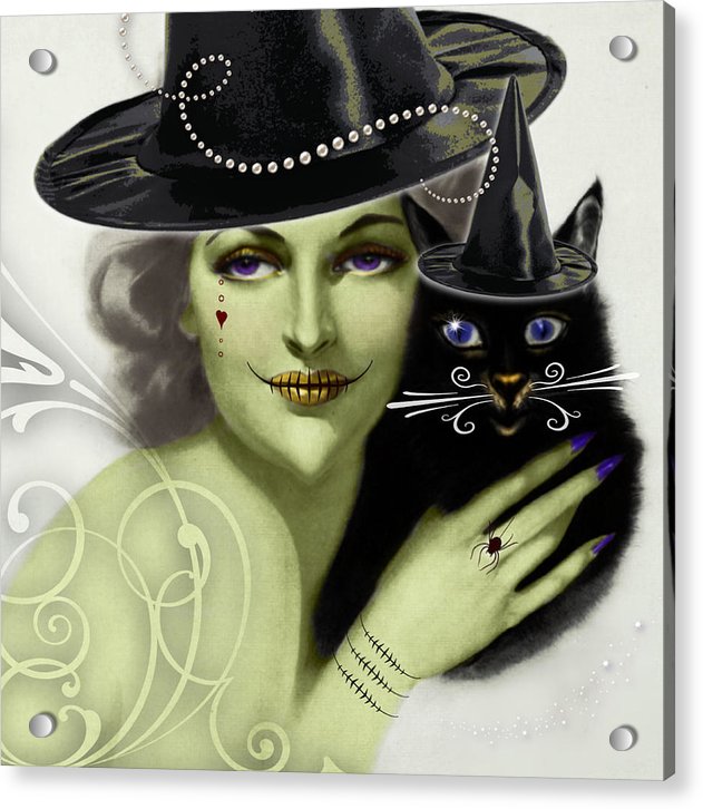 The Witch and Mr. Whiskers - Halloween Acrylic Print